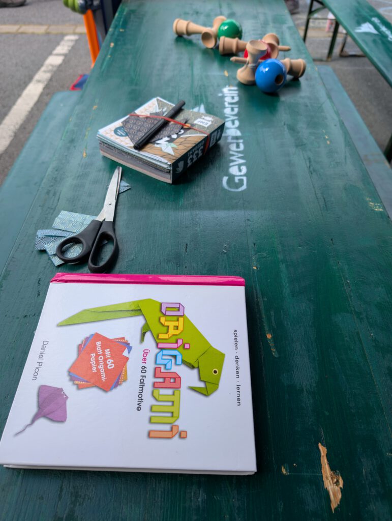 Wir luden zu Länderpuzzles ein und boten typische Spiele aus den Ländern der Partnerstädte an. Bei Kendama und Penthelita war wahres Geschick gefragt. Für kreative Gäste gab es die Möglichkeit sich an Origami oder Armbändern in den Farben der Flaggen der Partnerländer auszuprobieren. Für den kleinen Hunger zwischendurch wurden zudem frische Crêpes angeboten.